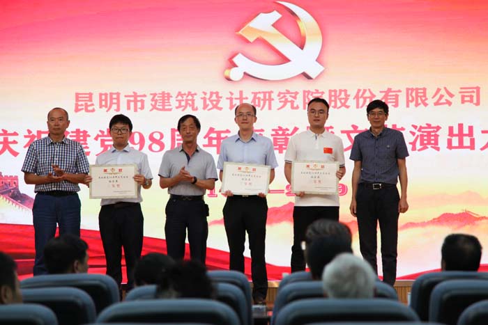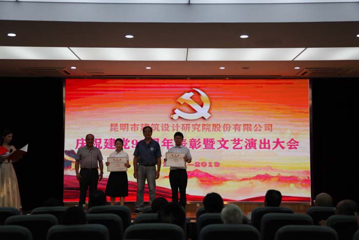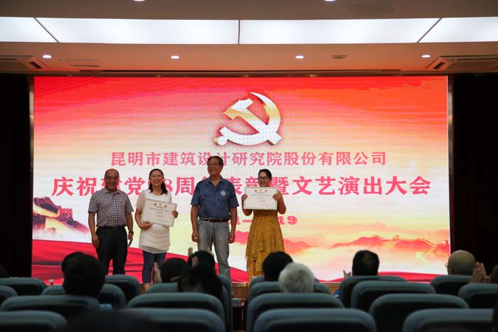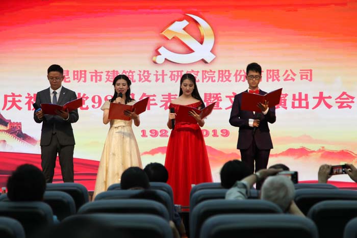董事長講話之后,大會(huì)對(duì)2018年度先進(jìn)黨支部、優(yōu)秀共產(chǎn)黨員進(jìn)行了表彰并進(jìn)行頒獎(jiǎng)。儀式后,各部門紛紛獻(xiàn)上精心準(zhǔn)備的文藝節(jié)目,大家引吭高歌,將發(fā)自內(nèi)心的頌歌獻(xiàn)給祖國,獻(xiàn)給人民,獻(xiàn)給黨。重慶大學(xué)云南校友會(huì)、大理市規(guī)劃設(shè)計(jì)研究院、著名朗誦藝術(shù)表演者丁進(jìn)老師也來到了我們身邊,為黨的生日獻(xiàn)上精彩節(jié)目。同時(shí),云南省招投標(biāo)管理辦公室、云南省建設(shè)工程招投標(biāo)行業(yè)協(xié)會(huì)的領(lǐng)導(dǎo)嘉賓也參與了觀禮。下午六時(shí),大會(huì)在雄壯的《國際歌》歌聲中圓滿落下帷幕。