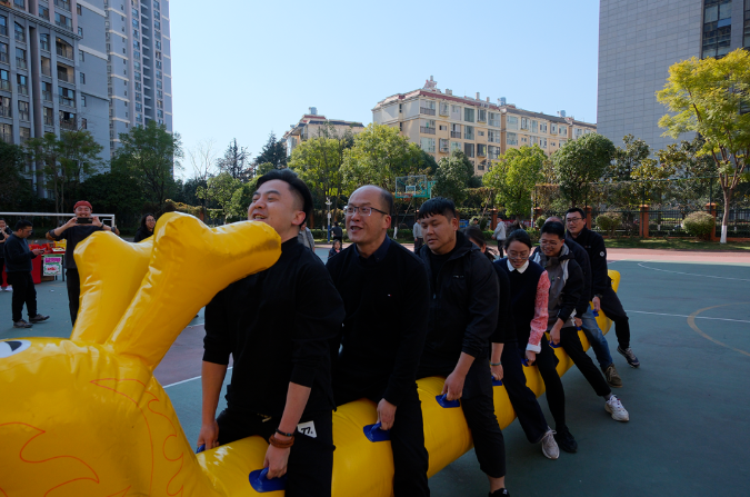 當(dāng)天下午,公司團(tuán)委還為全體職工獻(xiàn)上了精彩的新春游園活動(dòng)。游園活動(dòng)分團(tuán)體和個(gè)人兩類(lèi),團(tuán)體類(lèi)游戲?yàn)楹档佚堉劢恿?,充分展現(xiàn)了公司職工堅(jiān)毅拼搏、合作共進(jìn)的團(tuán)隊(duì)精神;個(gè)人游戲共設(shè)投壺、定點(diǎn)投籃、漢諾塔、夾彈珠、急速三子棋五種,展現(xiàn)了熱情滿滿、活力四射的職工風(fēng)采。值得點(diǎn)贊的是招商銀行還出資出力,為公司職工奉上了“送春聯(lián)、捏面人、畫(huà)糖畫(huà)”活動(dòng),將濃濃的文化氣息和新春祝福送到家。職工及“院寶們”在中華小學(xué)的操場(chǎng)上玩的暢快淋漓,沐浴在新春歡快的氛圍里。