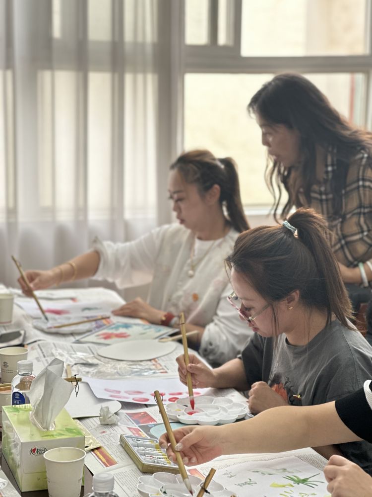 活動邀請了昆明理工大學津橋學院的美術老師現(xiàn)場授課,指導大家進行書法、繪畫創(chuàng)作,以詩入扇、以畫入扇,繪制屬于自己的“母親節(jié)”扇面畫。在老師的悉心講解下,大家熱情高漲,紛紛拿起畫筆,在團扇上繪制出精美的圖案,每一筆、每一畫都充滿了對美好生活的向往和追求。